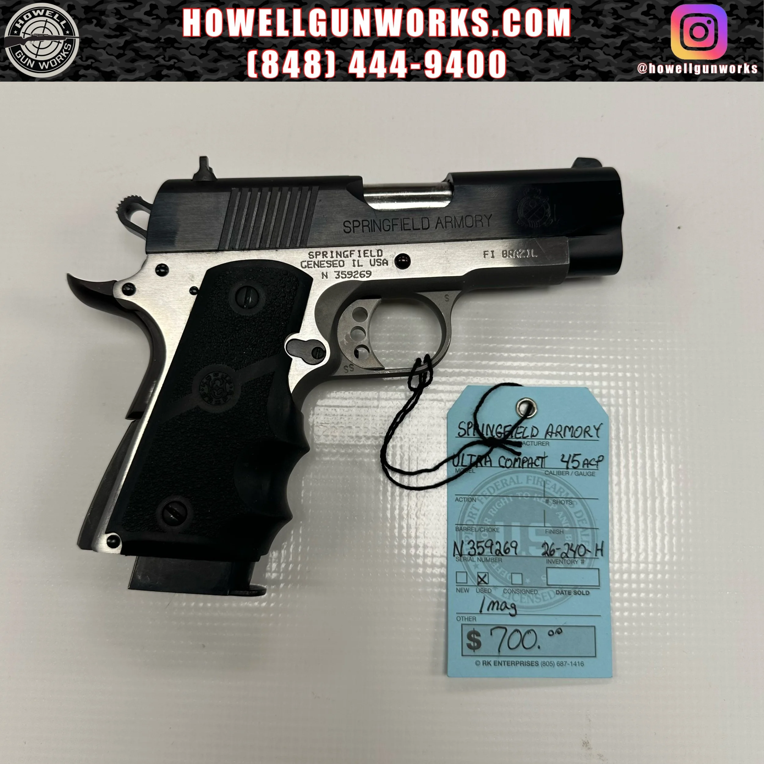 Image 1 of 1 Springfield 1911 Ultra Compact .45ACP $700.00 Used. Has a mag. Add To Cart Added! Used. Has a mag.